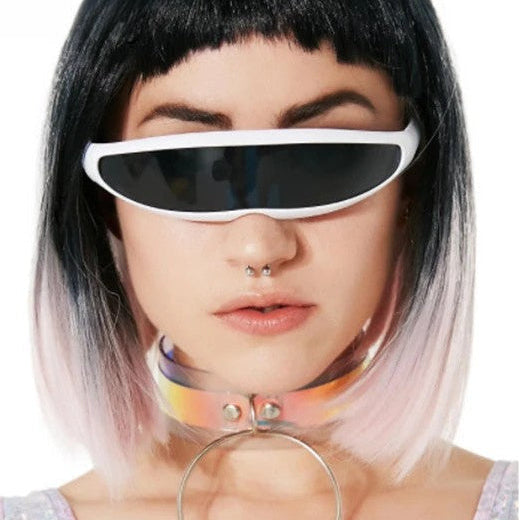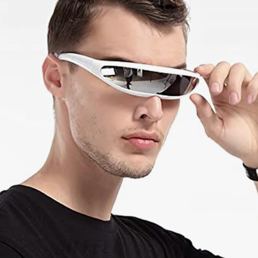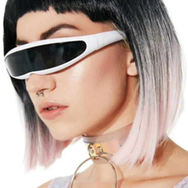 Embrace the retro future with these Y2K punk style wrap-around sunglasses.