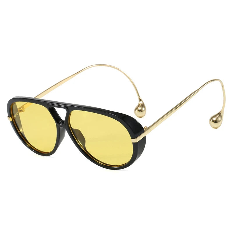 Elevate your look with these retro oversized aviator sunglasses, inspired by 70s fashion. The large round lenses and oversized frame provide full coverage, while the side shields ensure extra comfort and sun protection.