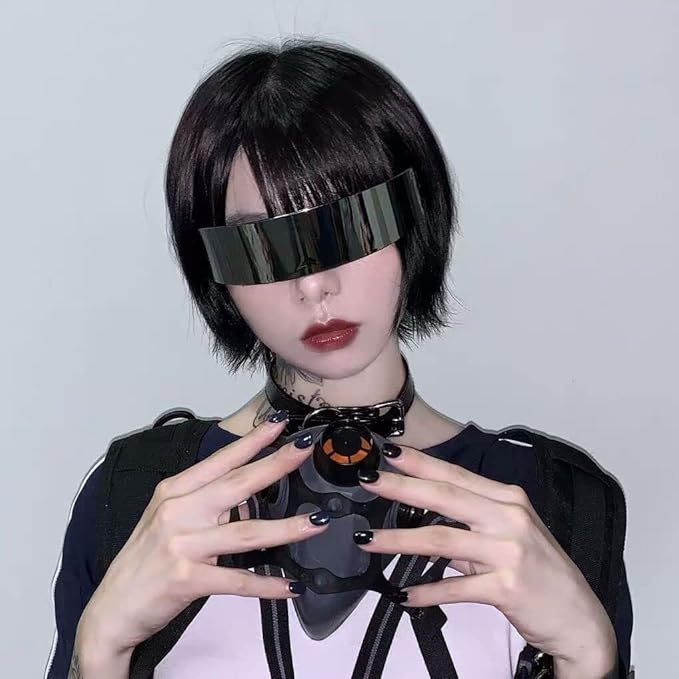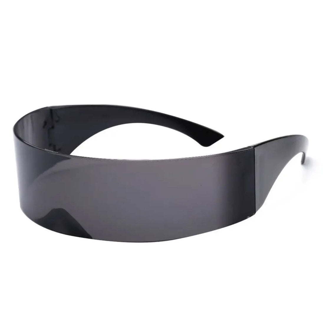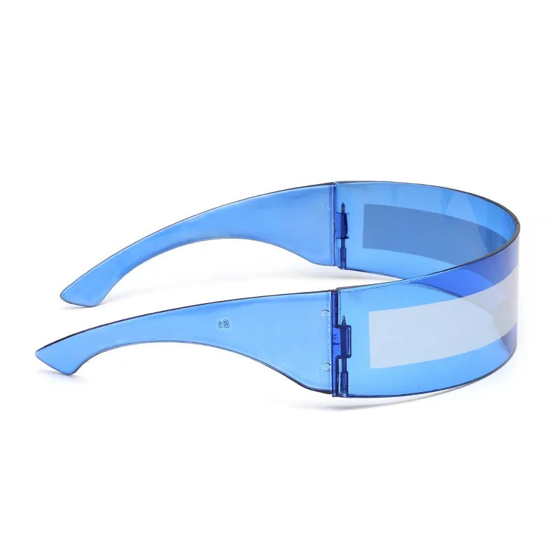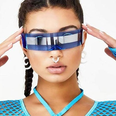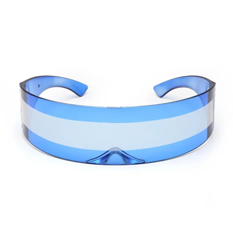 Futuristic wrap-around style makes a bold statement at any costume party or festival.